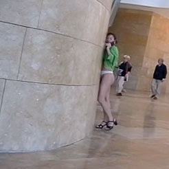 Imagen: la artista Andrea Fraser durante una intervención artística en el Guggenheim Bilbao (2001)